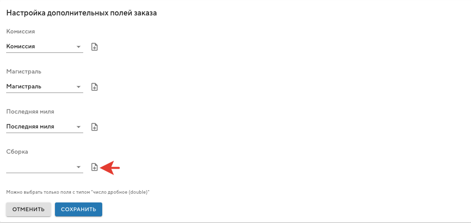 «Настройка дополнительных полей заказа» - функция для настройки учета комиссий. Для каждого поля необходимо задать соответствующее имя.